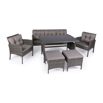 *Αποτελείται από Καναπέ 3θέσεων, 2 Πολυθρόνες, 2 Σκαμπώ και Τραπέζι, από μεταλλικό (steel) σκελετό και Wicker (flat) επένδυση σε ΓΚΡΙ