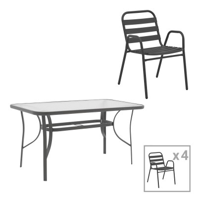 Τραπεζαρία Ensure-Sussie pakoworld σετ 5τεμ μέταλλο-γυαλί ανθρακί 140x80x70εκ.