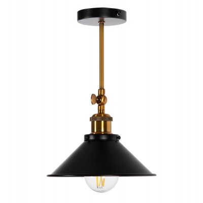 Το HΜ4121 είναι ένα νέο και πρακτικό μονόφωτο μεταλλικό φωτιστικό που θα ολοκληρώσει τη διακόσμησή σου. Διαθέτει μαύρο καπέλο και χρυσή σωλήνα κρέμασης. Το σημαντικό χαρακτηριστικό αυτού του φωτιστικού είναι ότι μπορεί να μονταριστεί και σε τοίχο, χάρη σε έναν μοχλό που «σπάει» την σωλήνα κρέμασης και στρέφει το καπέλο σε διαφορετική κατεύθυνση.