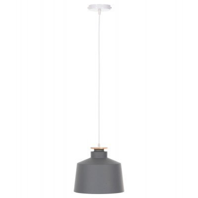 Ανακαλύψτε αυτό το νέο μας κρεμαστό φωτιστικό οροφής και ολοκληρώστε την διακόσμησή σας. Πρόκειται για ένα φωτιστικό με ΓΚΡΙ καπέλο ΑΛΟΥΜΙΝΙΟΥ σε σχήμα καμπάνας με λεπτομέρεια ξύλου στην κορυφή του φωτιστικού. Αισθητικά, ολοκληρώνεται με το λευκό καλώδιο κρέμασης και την λευκή βάση οροφής, και αποτελεί την τελευταία τάση στα φωτιστικά οροφής.