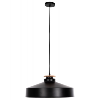 Ανακαλύψτε αυτό το νέο μας κρεμαστό φωτιστικό οροφής και ολοκληρώστε την διακόσμησή σας. Πρόκειται για ένα φωτιστικό με ΜΑΥΡΟ ρηχό μεταλλικό καπέλο σε σχήμα καμπάνας με λεπτομέρεια ξύλου στην κορυφή του φωτιστικού. Αισθητικά, ολοκληρώνεται με το μαύρο καλώδιο κρέμασης και την λευκή βάση οροφής, και αποτελεί την τελευταία τάση στα φωτιστικά οροφής.