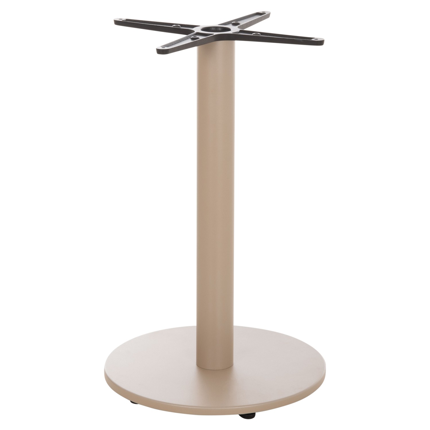 Η ΗΜ476.25 είναι μια στρογγυλή βάση για τραπέζι σε ΚΑΠΟΥΤΣΙΝΟ χρώμα. Αυτή η βάση είναι αλουμινίου με ηλεκτροστατική βαφή, με μία κολώνα η οποία στηρίζεται σε μια βαριά επίπεδη αλουμινένια επιφάνεια. Το καπάκι που θα διαλέξετε στηρίζεται σε έναν «σταυρό», με αποτέλεσμα να μπορεί να δεχθεί τόσο στρογγυλά καπάκια, όσο και τετράγωνα. Επίσης, στο κάτω μέρος της διαθέτει ρυθμιστές ύψους (ρεγουλατόρους). Ιδανική πρόταση για συνδυασμό με επιφάνειες σχεδόν κάθε είδους, όπως βερσαλίτες, HPL, MDF, κτλ.