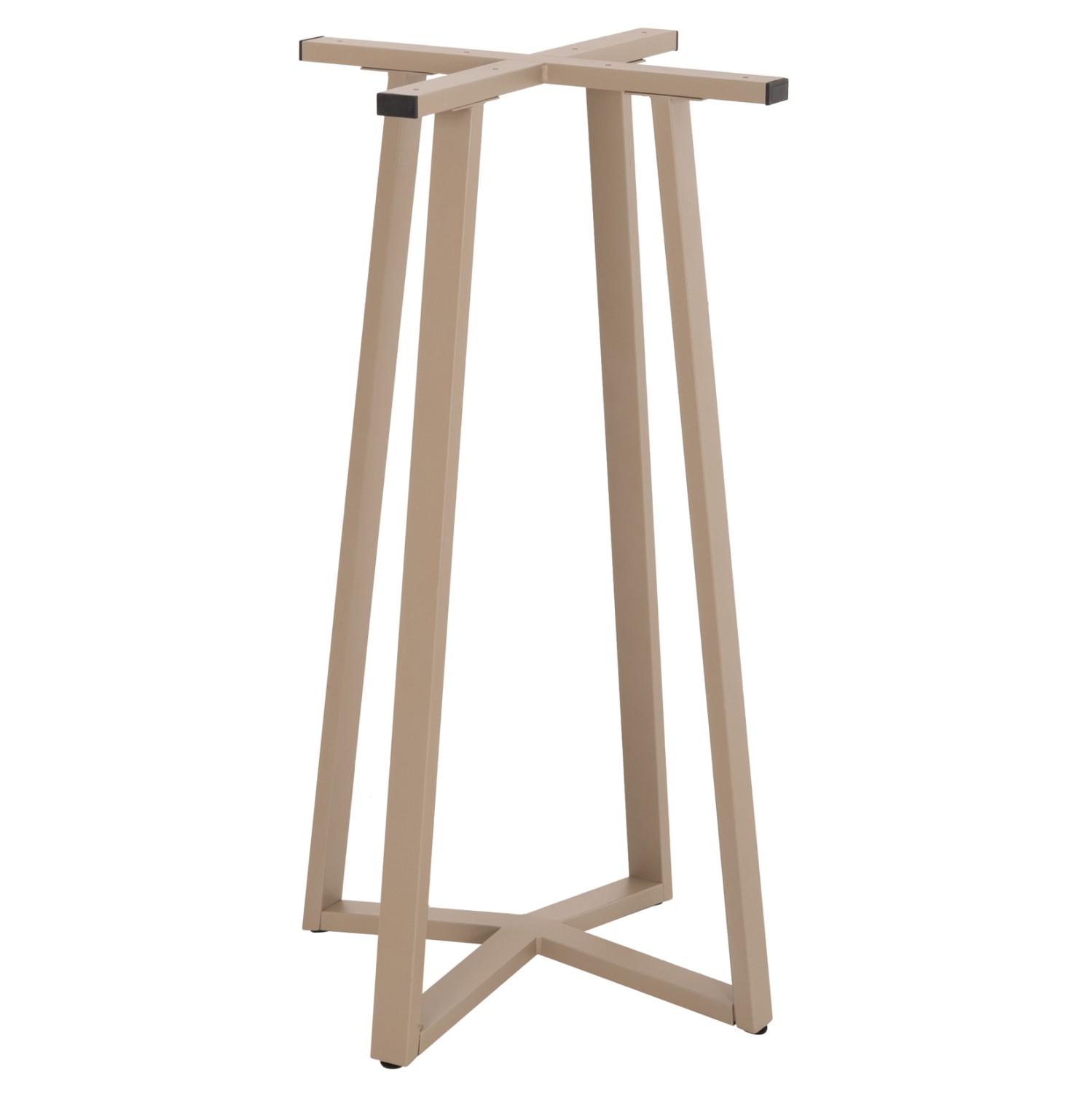 Η ΗΜ477.25 είναι βάση μεσαίου ύψους για τραπέζι bar σε ΜΑΤ ΚΑΠΟΥΤΣΙΝΟ χρώμα. Αυτή η βάση είναι μεταλλική με ηλεκτροστατική βαφή, με κολώνες σε χιαστί διάταξη. Αυτές οι κολώνες καταλήγουν στην βάση στήριξης της επιφάνειας που είναι επίσης σε σχήμα «σταυρού». Ως αποτέλεσμα μπορεί να δεχθεί τόσο στρογγυλά καπάκια, όσο και τετράγωνα. Επίσης, στο κάτω μέρος της διαθέτει ρυθμιστές ύψους (ρεγουλατόρους). Ιδανική πρόταση για συνδυασμό με επιφάνειες σχεδόν κάθε είδους, όπως βερσαλίτες, HPL, MDF, κτλ.