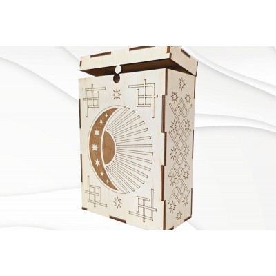Κουτί δώρου για κάρτες Ταρώ Πρόκειται για ψηφιακό σχεδίου, ιδανικό για κοπή με ή plotter. Κατασκευασμένο απο Ξύλο από plywood [3mm ή 4mm], κομμένο με ακρίβεια στην βιοτεχνία Intrahome . Το φυσικό ξύλο προσφέρει μια κομψή, αυθεντική υφή και μπορεί εύκολα να βαφτεί ή να διακοσμηθεί σύμφωνα με το προσωπικό σας γούστο. Ελληνική παραγωγή – Κατασκευάζεται στην Ελλάδα με προσοχή στη λεπτομέρεια και υψηλές προδιαγραφές ποιότητας. ✔️ Υλικό: Plywood υψηλής ποιότητας ✔️ Διατίθεται σε πάχος 3mm ή 4mm ✔️ Ελαφρύ, ανθεκτικό και εύκολο στη χρήση ✔️ Ιδανικό για βάψιμο, χάραξη, κόλληση και χειροτεχνίες ✔️ Κατάλληλο για μπομπονιέρες, διακόσμηση, δώρα και DIY projects ✅ Εγγύηση 2 ετών – Σε περίπτωση σπασίματος, η αντικατάσταση γίνεται άμεσα, χάρη στην τοπική ελληνική παραγωγή μας. Ιδανικό για δημιουργικούς ανθρώπους που αγαπούν το DIY. Μπορεί να γίνει ξεχωριστό δώρο με προσωπικό χαρακτήρα. Φέρνει “χειροποίητη” αισθητική στη διακόσμηση. -files- Ελληνική χειροποίητη παραγωγή → στηρίζετε τοπικο