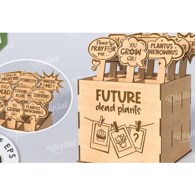 Intra απο ξύλο plywood 3mm-4mm πάχος - Αστεία φυτά μαρκαδόροι με κουτί Δίασταση 30x20 cm INTRAFABR-116816770