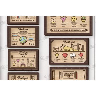 Πακέτο 3D Πλακέτες Εκτίμησης Δασκάλων – Κατηγορία: Επιγραφές – Πινακίδα. Διαστάσεις: 30x20 cm. Πρόκειται για προϊόν κατάλληλο για διακόσμηση και δημιουργικές χρήσεις. Πακέτο 3D Πλακέτες Εκτίμησης Δασκάλων Κατηγορία: Επιγραφές – Πινακίδα. Διαστάσεις: 30x20 cm. Πρόκειται για ψηφιακό σχεδίου, ιδανικό για κοπή με ή plotter. -files-- Κατασκευασμένο απο Ξύλο από plywood [3mm ή 4mm], κομμένο με ακρίβεια στην βιοτεχνία Intrahome . Το φυσικό ξύλο προσφέρει μια κομψή, αυθεντική υφή και μπορεί εύκολα να βαφτεί ή να διακοσμηθεί σύμφωνα με το προσωπικό σας γούστο. Ελληνική παραγωγή – Κατασκευάζεται στην Ελλάδα με προσοχή στη λεπτομέρεια και υψηλές προδιαγραφές ποιότητας. ✔️ Υλικό: Plywood υψηλής ποιότητας ✔️ Διατίθεται σε πάχος 3mm ή 4mm ✔️ Ελαφρύ, ανθεκτικό και εύκολο στη χρήση ✔️ Ιδανικό για βάψιμο, χάραξη, κόλληση και χειροτεχνίες ✔️ Κατάλληλο για μπομπονιέρες, διακόσμηση, δώρα και DIY projects ✅ Εγγύηση 2 ετών – Σε περίπτωση σπασίματος, η αντικατάσταση γίνεται άμεσα, χάρη στην τοπικ