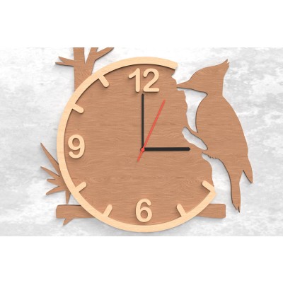 Intra απο ξύλο plywood 3mm-4mm πάχος – Ρολόι τοίχου Δρυοκολάπτης Δέντρο - Δίασταση 40x30 cm INTRAFABR-118392887