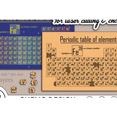 Όνομα Προϊόντος Intra απο ξύλο plywood 3mm-4mm πάχος – Περιοδικός Πίνακας Στοιχείων για Κοπή Δίασταση 45x45 cm INTRAFABR-72190223