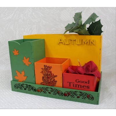 Intra απο ξύλο plywood 3mm-4mm πάχος - Autumn Desk Organizer Αποθήκευση προμηθειών γραφείου Δίασταση 20x20 cm Intraeaxys-075yrmko Κατασκευασμένο απο Ξύλο από plywood [3mm ή 4mm], κομμένο με ακρίβεια στην βιοτεχνία Intrahome . Το φυσικό ξύλο προσφέρει μια κομψή, αυθεντική υφή και μπορεί εύκολα να βαφτεί ή να διακοσμηθεί σύμφωνα με το προσωπικό σας γούστο. Ελληνική παραγωγή – Κατασκευάζεται στην Ελλάδα με προσοχή στη λεπτομέρεια και υψηλές προδιαγραφές ποιότητας. ✔️ Υλικό: Plywood υψηλής ποιότητας ✔️ Διατίθεται σε πάχος 3mm ή 4mm ✔️ Ελαφρύ, ανθεκτικό και εύκολο στη χρήση ✔️ Ιδανικό για βάψιμο, χάραξη, κόλληση και χειροτεχνίες ✔️ Κατάλληλο για μπομπονιέρες, διακόσμηση, δώρα και DIY projects ✅ Εγγύηση 2 ετών – Σε περίπτωση σπασίματος, η αντικατάσταση γίνεται άμεσα, χάρη στην τοπική ελληνική παραγωγή μας. Ιδανικό για δημιουργικούς ανθρώπους που αγαπούν το DIY. Μπορεί να γίνει ξεχωριστό δώρο με προσωπικό χαρακτήρα. Φέρνει “χειροποίητη” αισθητική στη διακόσμηση. -files- Ελληνική χε