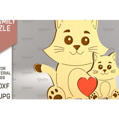 Όνομα Προϊόντος Intra απο ξύλο plywood 3mm-4mm πάχος Cat Family Puzzle . Γάτα Δίασταση 30x20 cm INTRAFABR-90004810