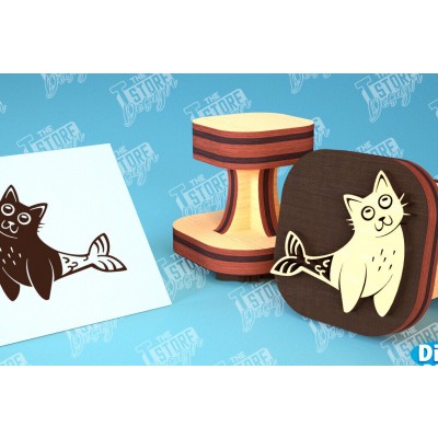 Intra απο ξύλο plywood 3mm-4mm πάχος Σφραγίδα γάτας | Παιδικό Σχέδιο | CNC Δίασταση 30x20 cm INTRAFABR-99549613