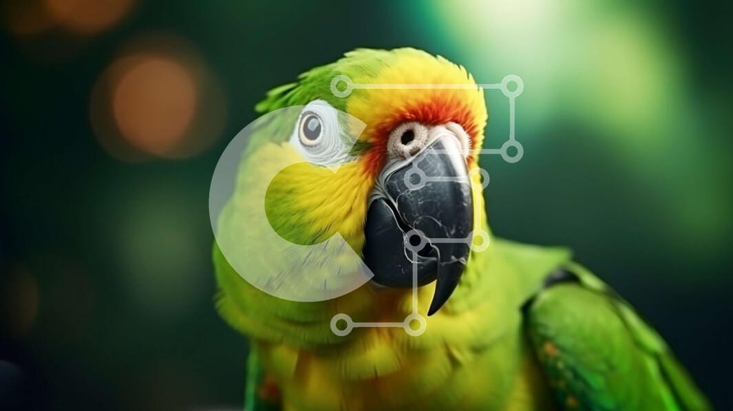 Υπάρχει δυνατότητα προσωποποίησης με δική σας φωτογραφία και προσαρμογής διαστάσεων κατόπιν παραγγελίας. Το συγεκεριμενο Puzzle 10x10 cm – 25 κομμ παρουσιαζει Αυτή η εικόνα δείχνει έναν πράσινο και κίτρινο παπαγάλο να στέκεται στο προσκήνιο. Το κεφάλι του παπαγάλου είναι γερμένο προς την κάμερα και έχει τα μάτια του ορθάνοιχτα, σαν να κοιτάζει κατευθείαν τον θεατή. Ένα μοναδικό Puzzle 10x10 cm –