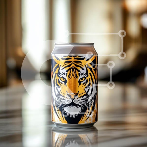 Υπάρχει δυνατότητα προσωποποίησης με δική σας φωτογραφία και προσαρμογής διαστάσεων κατόπιν παραγγελίας. Το συγεκεριμενο Puzzle 10x10 cm – 25 κομμ παρουσιαζει Η εικόνα απεικονίζει ένα κουτί αναψυκτικού διακοσμημένο με μια εντυπωσιακή απεικόνιση του προσώπου μιας τίγρης, που δείχνει ζωντανά πορτοκαλί και μαύρα χρώματα. Το κουτί τοποθετείται σε μια ανακλαστική επιφάνεια, με απαλό φωτισμό που δημιουρ