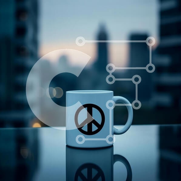 Υπάρχει δυνατότητα προσωποποίησης με δική σας φωτογραφία και προσαρμογής διαστάσεων κατόπιν παραγγελίας. Το συγεκεριμενο Puzzle 10x10 cm – 25 κομμ παρουσιαζει Αυτή η εικόνα παρουσιάζει μια λευκή κούπα καφέ με ένα μαύρο σύμβολο ειρήνης πάνω της. Η κούπα είναι ευδιάκριτα τοποθετημένη σε μια ανακλαστική επιφάνεια και το φόντο δείχνει ένα θολό αστικό τοπίο κατά την αυγή ή το σούρουπο, με απαλό, διάχυτ