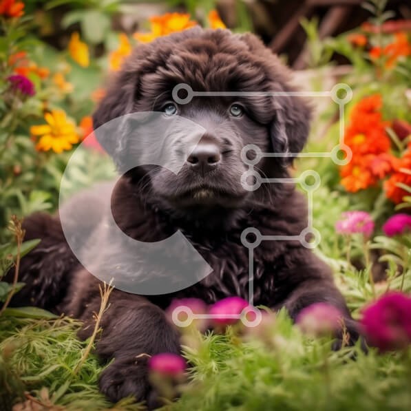 | Όνομα Προϊόντος | Intra Συλλεκτικό Ξύλινο Παζλ Plywood 4mm - Αξιολάτρευτη εικόνα ενός μαύρου κουταβιού της Νέας Γης σε ένα κρεβάτι με λουλούδια Σε Ξύλινο Κουτί - Διαστάσεις: 10x10 cm – 25 κομμάτια |