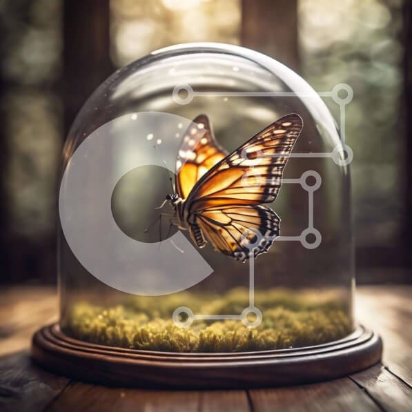 Υπάρχει δυνατότητα προσωποποίησης με δική σας φωτογραφία και προσαρμογής διαστάσεων κατόπιν παραγγελίας. Το συγεκεριμενο puzzle παρουσιαζει Η εικόνα δείχνει μια πεταλούδα κάτω από έναν κλειστό γυάλινο θόλο, φαινομενικά έτοιμη να πετάξει. Η θέση της πεταλούδας που αιωρείται υποδηλώνει πιθανή κίνηση έξω από τον θόλο ή αποφυγή αρπακτικών. Μεταφέρει μια αίσθηση ελευθερίας και λεπτής ομορφιάς. Ένα μοναδικό puzzle που