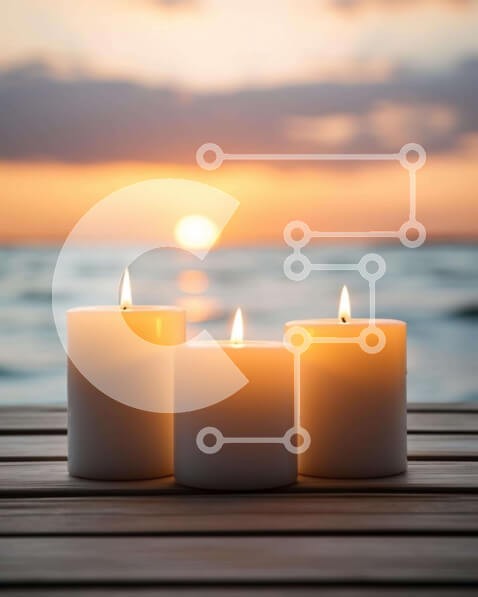 | Όνομα Προϊόντος | Intra Συλλεκτικό Ξύλινο Παζλ Plywood 4mm - Γαλήνια κεριά στο ξύλινο κατάστρωμα στο ηλιοβασίλεμα δίπλα στον ωκεανό Σε Ξύλινο Κουτί - Διαστάσεις: 10x10 cm – 25 κομμάτια |