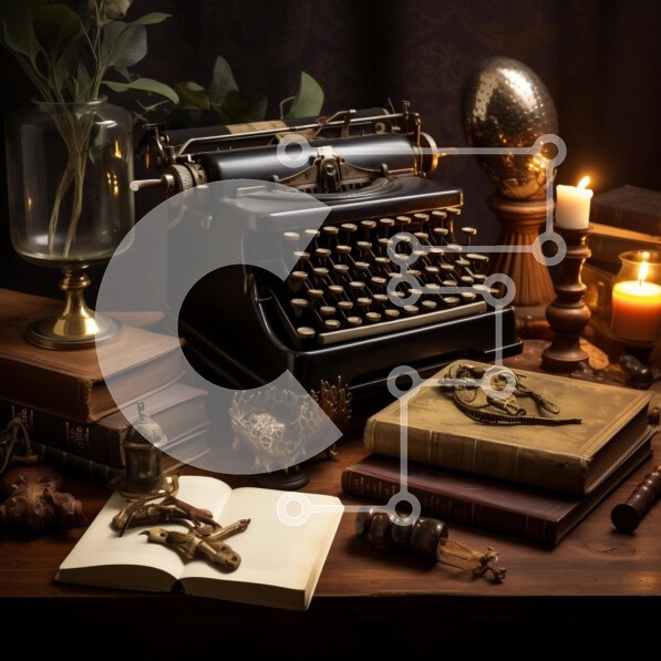 Υπάρχει δυνατότητα προσωποποίησης με δική σας φωτογραφία και προσαρμογής διαστάσεων κατόπιν παραγγελίας. Το συγεκεριμενο Puzzle 10x10 cm – 25 κομμ παρουσιαζει Η εικόνα παρουσιάζει μια παλιομοδίτικη γραφομηχανή, βιβλία, κεριά, ένα κηροπήγιο και διάφορα διακοσμητικά αντικείμενα σε ένα ξύλινο τραπέζι, δημιουργώντας ένα άνετο σκηνικό με θέμα τη φαντασία. Ένα μοναδικό Puzzle 10x10 cm – 25 κομμπου συνδ