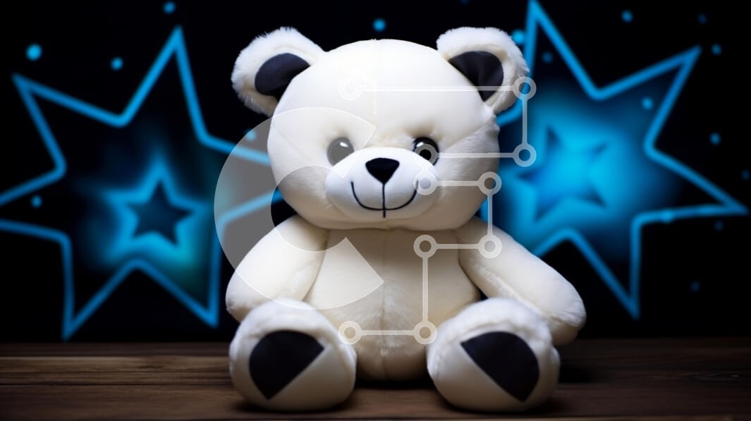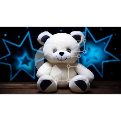 Υπάρχει δυνατότητα προσωποποίησης με δική σας φωτογραφία και προσαρμογής διαστάσεων κατόπιν παραγγελίας. Το συγεκεριμενο Puzzle 10x10 cm – 25 κομμ παρουσιαζει Αυτή η εικόνα παρουσιάζει ένα βελούδινο αρκουδάκι που κάθεται σε μια ξύλινη επιφάνεια με φόντο μπλε και μαύρα αστέρια. Το αρκουδάκι είναι λευκό με μαύρες πινελιές, συμπεριλαμβανομένων των αυτιών και των μαξιλαριών του. Τα μεγάλα, εκφραστικά