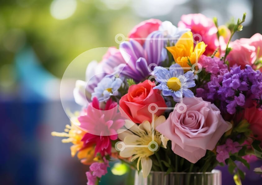 Υπάρχει δυνατότητα προσωποποίησης με δική σας φωτογραφία και προσαρμογής διαστάσεων κατόπιν παραγγελίας. Το συγεκεριμενο puzzle παρουσιαζει Η εικόνα δείχνει ένα διαφανές βάζο γεμάτο με μια ποικιλία από πολύχρωμα λουλούδια όπως τριαντάφυλλα, γαρίφαλα και μαργαρίτες. Η σύνθεση με λουλούδια τοποθετείται ως κεντρικό στοιχείο σε ένα τραπέζι, υποδεικνύοντας την πιθανή διακοσμητική χρήση της. Γύρω από το βάζο υπάρχουν πρ