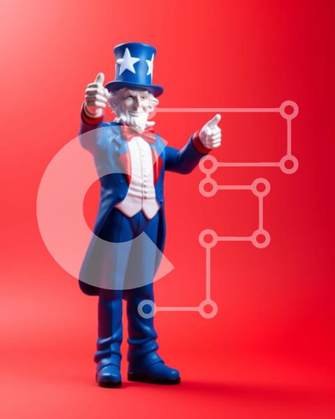 Υπάρχει δυνατότητα προσωποποίησης με δική σας φωτογραφία και προσαρμογής διαστάσεων κατόπιν παραγγελίας. Το συγεκεριμενο Puzzle 10x10 cm – 25 κομμ παρουσιαζει Η εικόνα παρουσιάζει ένα ειδώλιο παιχνιδιού ενός θείου που στέκεται μπροστά σε κόκκινο φόντο. Η φιγούρα είναι ντυμένη με παραδοσιακή αμερικανική ενδυμασία, με το καπέλο και το σακάκι του. Έχει δύο αντίχειρες στο πρόσωπό του, υποδηλώνοντας ότ