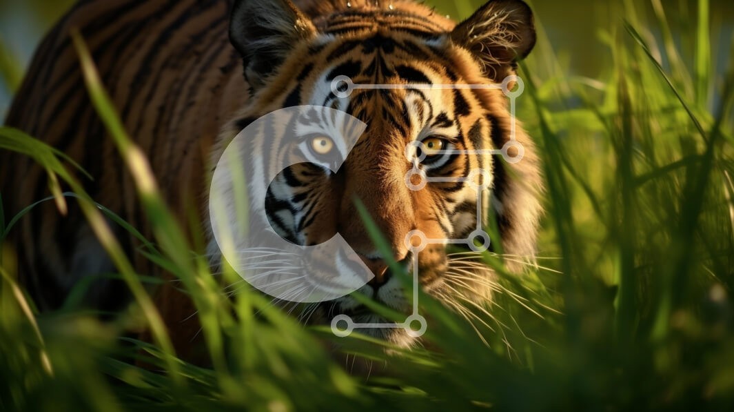 Υπάρχει δυνατότητα προσωποποίησης με δική σας φωτογραφία και προσαρμογής διαστάσεων κατόπιν παραγγελίας. Το συγεκεριμενο Puzzle 10x10 cm – 25 κομμ παρουσιαζει Η εικόνα παρουσιάζει ένα κοντινό πλάνο μιας τίγρης που κρύβεται σε ψηλό πράσινο γρασίδι. Η εντυπωσιακή πορτοκαλί γούνα του, με μοτίβο με έντονες μαύρες ρίγες, δημιουργεί μια μαγευτική αντίθεση ενάντια στο πλούσιο πράσινο. Το έντονο βλέμμα τη