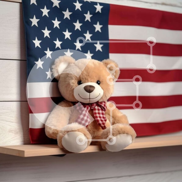 Υπάρχει δυνατότητα προσωποποίησης με δική σας φωτογραφία και προσαρμογής διαστάσεων κατόπιν παραγγελίας. Το συγεκεριμενο Puzzle 10x10 cm – 25 κομμ παρουσιαζει Η εικόνα απεικονίζει ένα αρκουδάκι να κάθεται στο ράφι μπροστά από μια αμερικανική σημαία. Είναι πιθανό ότι το λούτρινο ζώο προορίζεται να τοποθετηθεί εκεί για επίδειξη, καθώς κάθεται δίπλα στη σημαία με το κεφάλι του γερμένο προς το πλάι κα