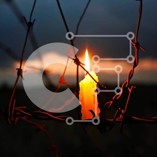 Υπάρχει δυνατότητα προσωποποίησης με δική σας φωτογραφία και προσαρμογής διαστάσεων κατόπιν παραγγελίας. Το συγεκεριμενο Puzzle 10x10 cm – 25 κομμ παρουσιαζει Αυτή η εικόνα παρουσιάζει ένα κερί τοποθετημένο στη μέση ενός συρματοπλέγματος, φωτισμένο τη νύχτα. Το φως του κεριού δημιουργεί μια εντυπωσιακή αντίθεση ενάντια στο σκοτάδι, μεταφέροντας μια αίσθηση ανθεκτικότητας και ελπίδας. Ένα μοναδικό