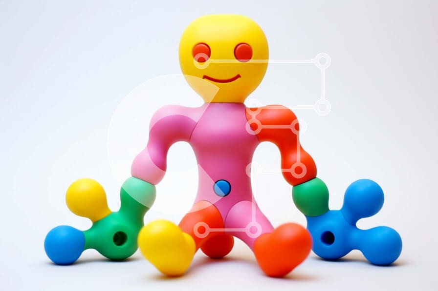 Υπάρχει δυνατότητα προσωποποίησης με δική σας φωτογραφία και προσαρμογής διαστάσεων κατόπιν παραγγελίας. Το συγεκεριμενο Puzzle 10x10 cm – 25 κομμ παρουσιαζει Αυτή η εικόνα παρουσιάζει μια πολύχρωμη φιγούρα παιχνιδιού που κάθεται, με τα χέρια και τα πόδια απλωμένα μπροστά της. Η φιγούρα είναι κατασκευασμένη από πλαστικό ή παρόμοιο υλικό, όπως φαίνεται από τις τέσσερις χρωματιστές κουκκίδες στο πλά