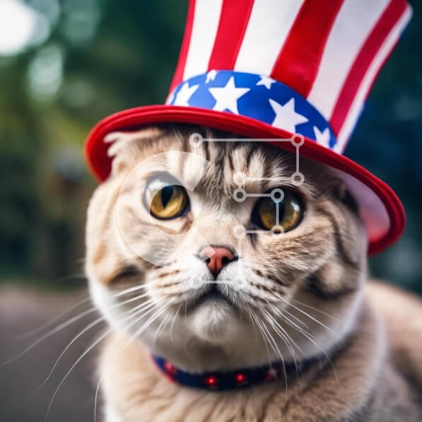 | Όνομα Προϊόντος | Intra Συλλεκτικό Ξύλινο Παζλ Plywood 4mm - Γάτα με καπέλο αμερικανικής σημαίας κοιτάζοντας επίμονα την κάμερα Σε Ξύλινο Κουτί - Διαστάσεις: 10x10 cm – 25 κομμάτια |
