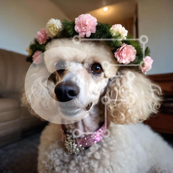 Υπάρχει δυνατότητα προσωποποίησης με δική σας φωτογραφία και προσαρμογής διαστάσεων κατόπιν παραγγελίας. Το συγεκεριμενο Puzzle 10x10 cm – 25 κομμ παρουσιαζει Η εικόνα απεικονίζει ένα λευκό κανίς που φορά ένα στέμμα λουλουδιών ενώ κάθεται στο σαλόνι, αποπνέοντας χαρά και ικανοποίηση. Μπορεί να ερμηνευτεί ως σκηνή εσωτερικού ή εξωτερικού χώρου, ανάλογα με την οπτική γωνία του θεατή. Ένα μοναδικό P