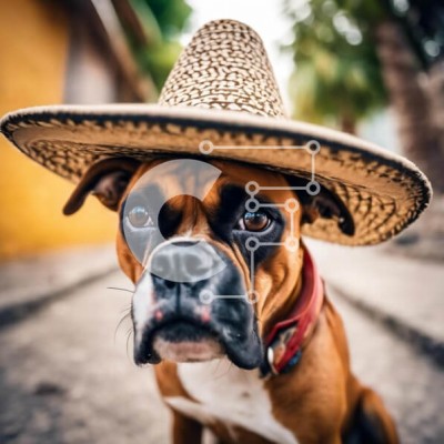 Υπάρχει δυνατότητα προσωποποίησης με δική σας φωτογραφία και προσαρμογής διαστάσεων κατόπιν παραγγελίας. Το συγεκεριμενο Puzzle 10x10 cm – 25 κομμ παρουσιαζει Αυτή η εικόνα παρουσιάζει έναν καφέ σκύλο μπόξερ που φορά ένα εντυπωσιακό καπέλο σομπρέρο και κάθεται στο δρόμο. Ο σκύλος φαίνεται να είναι περιποιημένος και έτοιμος να παίξει. Μπορεί να υπάρχουν άλλα άτομα στο παρασκήνιο, όπως παιδιά ή περα