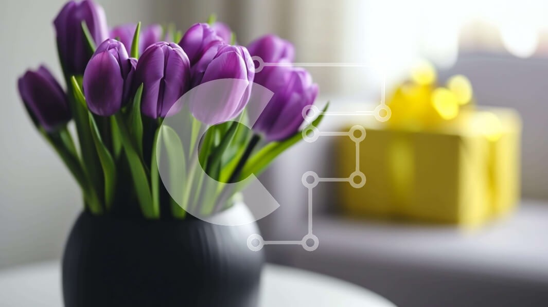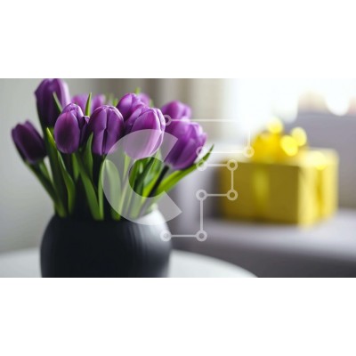 Υπάρχει δυνατότητα προσωποποίησης με δική σας φωτογραφία και προσαρμογής διαστάσεων κατόπιν παραγγελίας. Το συγεκεριμενο puzzle παρουσιαζει Αυτή η εικόνα παρουσιάζει ένα μαύρο βάζο γεμάτο με μοβ τουλίπες, τοποθετημένο μπροστά από ένα άδειο τραπέζι. Ένα κίτρινο κουτί δώρου φαίνεται στο πλάι, προσθέτοντας την ιδέα ότι τα λουλούδια αγοράστηκαν πρόσφατα ή δόθηκαν ως δώρο. Υπάρχει επίσης αρκετός χώρος μεταξύ του βάζου