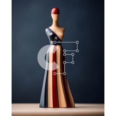 Υπάρχει δυνατότητα προσωποποίησης με δική σας φωτογραφία και προσαρμογής διαστάσεων κατόπιν παραγγελίας. Το συγεκεριμενο Puzzle 10x10 cm – 25 κομμ παρουσιαζει Αυτή η εικόνα παρουσιάζει ένα ξύλινο μανεκέν που φορά ένα φόρεμα με αμερικανική σημαία, σε σκούρο φόντο. Είναι μια τέλεια αναπαράσταση πατριωτικών θεμάτων, όπως η ημέρα της ανεξαρτησίας και οι εορτασμοί της 4ης Ιουλίου. Ένα μοναδικό Puzzle