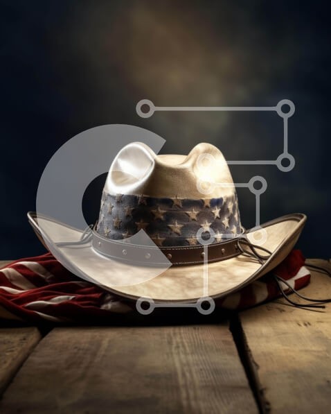 Υπάρχει δυνατότητα προσωποποίησης με δική σας φωτογραφία και προσαρμογής διαστάσεων κατόπιν παραγγελίας. Το συγεκεριμενο Puzzle 10x10 cm – 25 κομμ παρουσιαζει Η εικόνα απεικονίζει ένα λευκό καουμπόικο καπέλο πάνω από μια αμερικανική σημαία, με πολλά κομμάτια χορδής και κορδόνια κοντά, που πιθανώς σχετίζονται με ένα μουσικό όργανο. Το καουμπόικο καπέλο θα μπορούσε να χρησιμοποιηθεί για προστασία ή