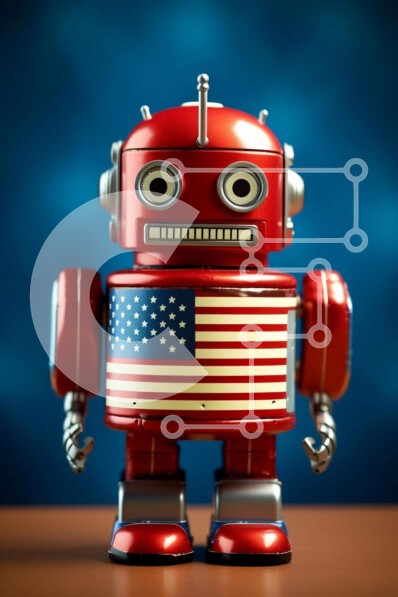 Υπάρχει δυνατότητα προσωποποίησης με δική σας φωτογραφία και προσαρμογής διαστάσεων κατόπιν παραγγελίας. Το συγεκεριμενο Puzzle 10x10 cm – 25 κομμ παρουσιαζει Η εικόνα δείχνει ένα κόκκινο ρομπότ με μια αμερικανική σημαία στο κεφάλι του, που στέκεται σε ένα τραπέζι. Η παρουσία του ρομπότ μπορεί να υποδηλώνει ψυχαγωγία ή πατριωτισμό, που ενδεχομένως συμβολίζει τις Ηνωμένες Πολιτείες της Αμερικής. Επ