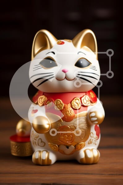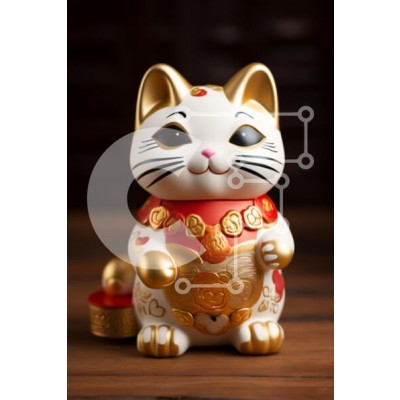 Υπάρχει δυνατότητα προσωποποίησης με δική σας φωτογραφία και προσαρμογής διαστάσεων κατόπιν παραγγελίας. Το συγεκεριμενο Puzzle 10x10 cm – 25 κομμ παρουσιαζει Αυτή η εικόνα παρουσιάζει ένα διακοσμητικό κεραμικό ειδώλιο γάτας, που συχνά αναφέρεται ως «Μανέκι-νέκο» ή γάτα που γνέφει. Η γάτα είναι διακοσμημένη με λευκή βάση, χρυσές πινελιές και ζωηρά κόκκινα στοιχεία, συμπεριλαμβανομένου ενός φλοράλ