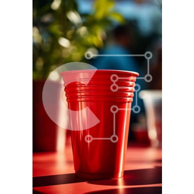 Υπάρχει δυνατότητα προσωποποίησης με δική σας φωτογραφία και προσαρμογής διαστάσεων κατόπιν παραγγελίας. Το συγεκεριμενο Puzzle 10x10 cm – 25 κομμ παρουσιαζει Η εικόνα παρουσιάζει ένα κόκκινο πλαστικό κύπελλο που κάθεται σε ένα τραπέζι εξωτερικού χώρου. Τοποθετείται στη μέση του τραπεζιού, δίπλα σε πολλά φυτά σε γλάστρες που είναι διάσπαρτα στην περιοχή. Ένα άτομο μπορεί να δει να στέκεται κοντά σ