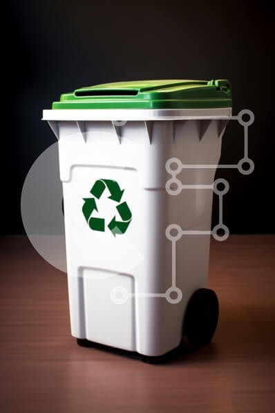 Υπάρχει δυνατότητα προσωποποίησης με δική σας φωτογραφία και προσαρμογής διαστάσεων κατόπιν παραγγελίας. Το συγεκεριμενο Puzzle 10x10 cm – 25 κομμ παρουσιαζει Η εικόνα παρουσιάζει έναν λευκό κάδο ανακύκλωσης που είναι τοποθετημένος πάνω από ένα ημιτελές ξύλινο τραπέζι. Στο πλάι του κάδου διακρίνεται ένα πράσινο αυτοκόλλητο ανακύκλωσης, το οποίο δείχνει ότι έχει ανακυκλωθεί. Μπορεί να χρησιμοποιηθε