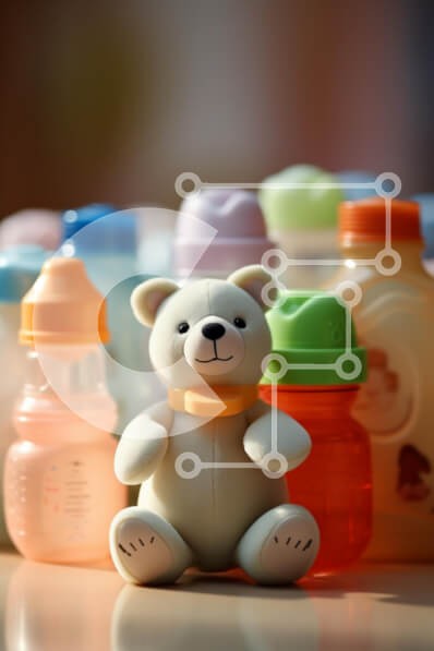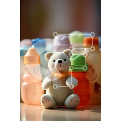 Υπάρχει δυνατότητα προσωποποίησης με δική σας φωτογραφία και προσαρμογής διαστάσεων κατόπιν παραγγελίας. Το συγεκεριμενο Puzzle 10x10 cm – 25 κομμ παρουσιαζει Αυτή η εικόνα παρουσιάζει ένα χαριτωμένο παιχνίδι αρκούδας που κάθεται μπροστά από μια πολύχρωμη ποικιλία από μπιμπερό. Η αρκούδα, με μια φιλική έκφραση, εμφανίζεται σε περίοπτη θέση στο πρώτο πλάνο, ενώ το φόντο με απαλή εστίαση προβάλλει δ