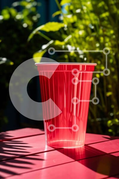 Υπάρχει δυνατότητα προσωποποίησης με δική σας φωτογραφία και προσαρμογής διαστάσεων κατόπιν παραγγελίας. Το συγεκεριμενο Puzzle 10x10 cm – 25 κομμ παρουσιαζει Η εικόνα παρουσιάζει ένα κόκκινο πλαστικό κύπελλο που κάθεται πάνω από ένα εξωτερικό ξύλινο τραπέζι. Το φλιτζάνι τοποθετείται στη μέση του τραπεζιού, στραμμένο μακριά από την κάμερα. Υπάρχουν πολλά φυτά και δέντρα που περιβάλλουν το φλιτζάνι