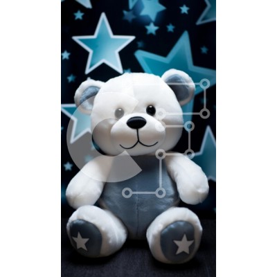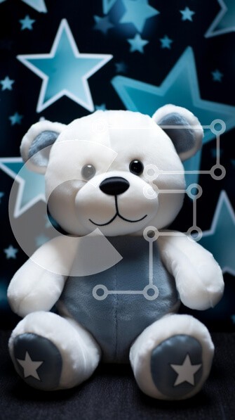 Υπάρχει δυνατότητα προσωποποίησης με δική σας φωτογραφία και προσαρμογής διαστάσεων κατόπιν παραγγελίας. Το συγεκεριμενο Puzzle 10x10 cm – 25 κομμ παρουσιαζει Αυτή η εικόνα παρουσιάζει ένα χαριτωμένο βελούδινο αρκουδάκι με λευκό και γκρι χρωματικό συνδυασμό, που κάθεται με φόντο μπλε αστέρια. Η αρκούδα έχει ένα φιλικό χαμόγελο, μεγάλα μαύρα μάτια και σχέδια αστεριών στα πόδια της, που προκαλούν μι
