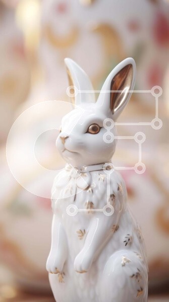 Υπάρχει δυνατότητα προσωποποίησης με δική σας φωτογραφία και προσαρμογής διαστάσεων κατόπιν παραγγελίας. Το συγεκεριμενο Puzzle 10x10 cm – 25 κομμ παρουσιαζει Η εικόνα δείχνει ένα λευκό ειδώλιο κουνελιού τοποθετημένο σε μια σειρά από διακοσμητικά αντικείμενα, δημιουργώντας μια γοητευτική και ιδιότροπη σκηνή. Το κουνέλι είναι τοποθετημένο στο κέντρο του τραπεζιού, με το κεφάλι του να γέρνει προς το