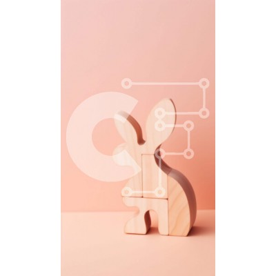 Υπάρχει δυνατότητα προσωποποίησης με δική σας φωτογραφία και προσαρμογής διαστάσεων κατόπιν παραγγελίας. Το συγεκεριμενο Puzzle 10x10 cm – 25 κομμ παρουσιαζει Η εικόνα απεικονίζει ένα ξύλινο παιχνίδι λαγουδάκι πάνω σε φόντο ροδάκινου. Μπορεί να χρησιμοποιηθεί ως εκπαιδευτικό εργαλείο για παιδιά ή ως διακοσμητική τέχνη. Πολλά κομμάτια ξύλου είναι ορατά, που επιδεικνύουν τις καλλιτεχνικές δεξιότητες