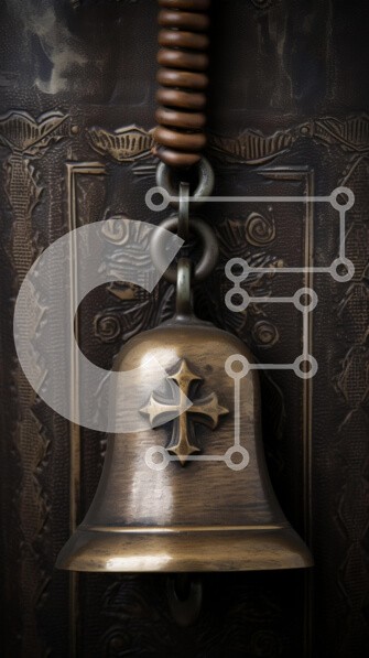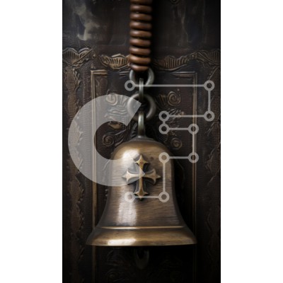 Υπάρχει δυνατότητα προσωποποίησης με δική σας φωτογραφία και προσαρμογής διαστάσεων κατόπιν παραγγελίας. Το συγεκεριμενο Puzzle 10x10 cm – 25 κομμ παρουσιαζει Η εικόνα δείχνει μια όμορφα κατασκευασμένη χάλκινη καμπάνα στολισμένη με έμβλημα σταυρού, που κρέμεται από αλυσίδα και μηχανισμό ελατηρίου σε ανάγλυφο σκούρο φόντο. Η επιφάνεια του κουδουνιού εμφανίζει περίπλοκες λεπτομέρειες και μια ζεστή π