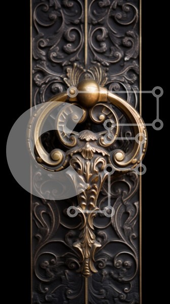 Υπάρχει δυνατότητα προσωποποίησης με δική σας φωτογραφία και προσαρμογής διαστάσεων κατόπιν παραγγελίας. Το συγεκεριμενο Puzzle 10x10 cm – 25 κομμ παρουσιαζει Αυτή η εικόνα παρουσιάζει ένα όμορφα διακοσμημένο ρόπτρο πόρτας από ορείχαλκο, σε ένα περίπλοκα σχεδιασμένο μαύρο φόντο. Το ρόπτρο παρουσιάζει λεπτομερή δεξιοτεχνία με λουλουδάτα και στροβιλιζόμενα μοτίβα και ξεχωρίζει ως εξέχον χαρακτηριστι