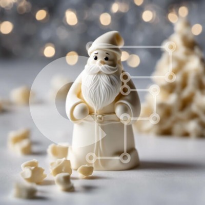 Υπάρχει δυνατότητα προσωποποίησης με δική σας φωτογραφία και προσαρμογής διαστάσεων κατόπιν παραγγελίας. Το συγεκεριμενο Puzzle 10x10 cm – 25 κομμ παρουσιαζει Αυτή η εικόνα παρουσιάζει ένα λευκό ειδώλιο του Άγιου Βασίλη που στέκεται μπροστά από πολλά κομμάτια λευκής σοκολάτας. Τα κομμάτια σοκολάτας μπορούν να χρησιμοποιηθούν για τη δημιουργία εορταστικών διακοσμήσεων για την περίοδο των γιορτών, ό