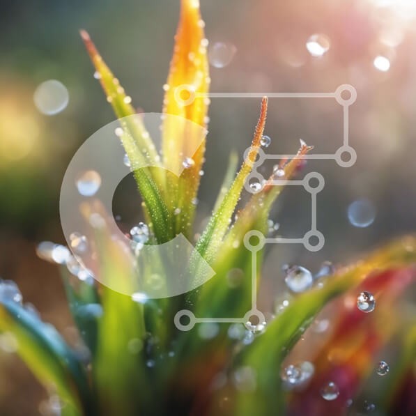 Υπάρχει δυνατότητα προσωποποίησης με δική σας φωτογραφία και προσαρμογής διαστάσεων κατόπιν παραγγελίας. Το συγεκεριμενο puzzle παρουσιαζει Αυτή η κοντινή εικόνα δείχνει έναν μικρό, πράσινο θάμνο με μακριά, λεπτά φύλλα και ένα λεπτό, πράσινο μίσχο. Σταγονίδια νερού διακρίνονται να κοσμούν τα φύλλα και το στέλεχος, δημιουργώντας ένα αστραφτερό αποτέλεσμα όταν φωτίζονται από το φως του ήλιου. Το φόντο διαθέτει ένα θ