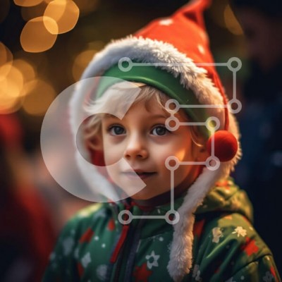 Υπάρχει δυνατότητα προσωποποίησης με δική σας φωτογραφία και προσαρμογής διαστάσεων κατόπιν παραγγελίας. Το συγεκεριμενο Puzzle 10x10 cm – 25 κομμ παρουσιαζει Αυτή η εικόνα παρουσιάζει ένα νεαρό αγόρι που φορά ένα πράσινο και κόκκινο χριστουγεννιάτικο πουλόβερ με κουκούλα και ασορτί καπέλο Άγιου Βασίλη. Στέκεται μπροστά σε ένα θολό φόντο με φώτα που αναβοσβήνουν, δημιουργώντας μια μαγική και γιορτ