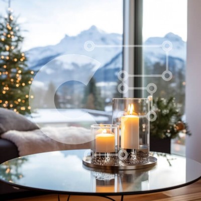 Υπάρχει δυνατότητα προσωποποίησης με δική σας φωτογραφία και προσαρμογής διαστάσεων κατόπιν παραγγελίας. Το συγεκεριμενο puzzle παρουσιαζει Αυτή η εικόνα παρουσιάζει ένα γυάλινο τραπέζι με δύο κεριά τοποθετημένα στην κορυφή, με φόντο τα μαγευτικά βουνά και τις χιονισμένες κορυφές. Η απέραντη θέα από ένα μεγάλο παράθυρο δημιουργεί μια γαλήνια και γαλήνια ατμόσφαιρα, ιδανική για χαλάρωση. Γύρω από το τραπέζι υπάρχου
